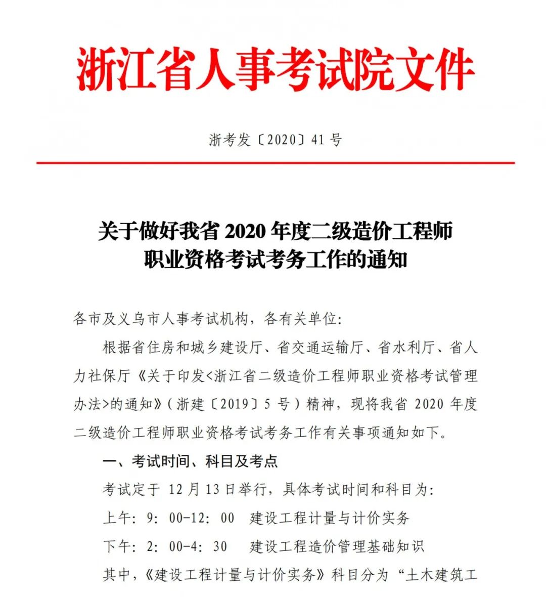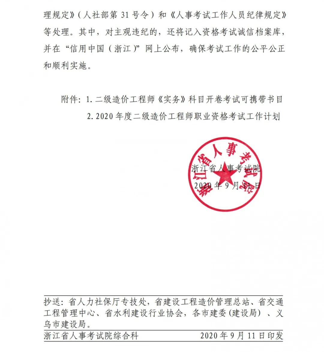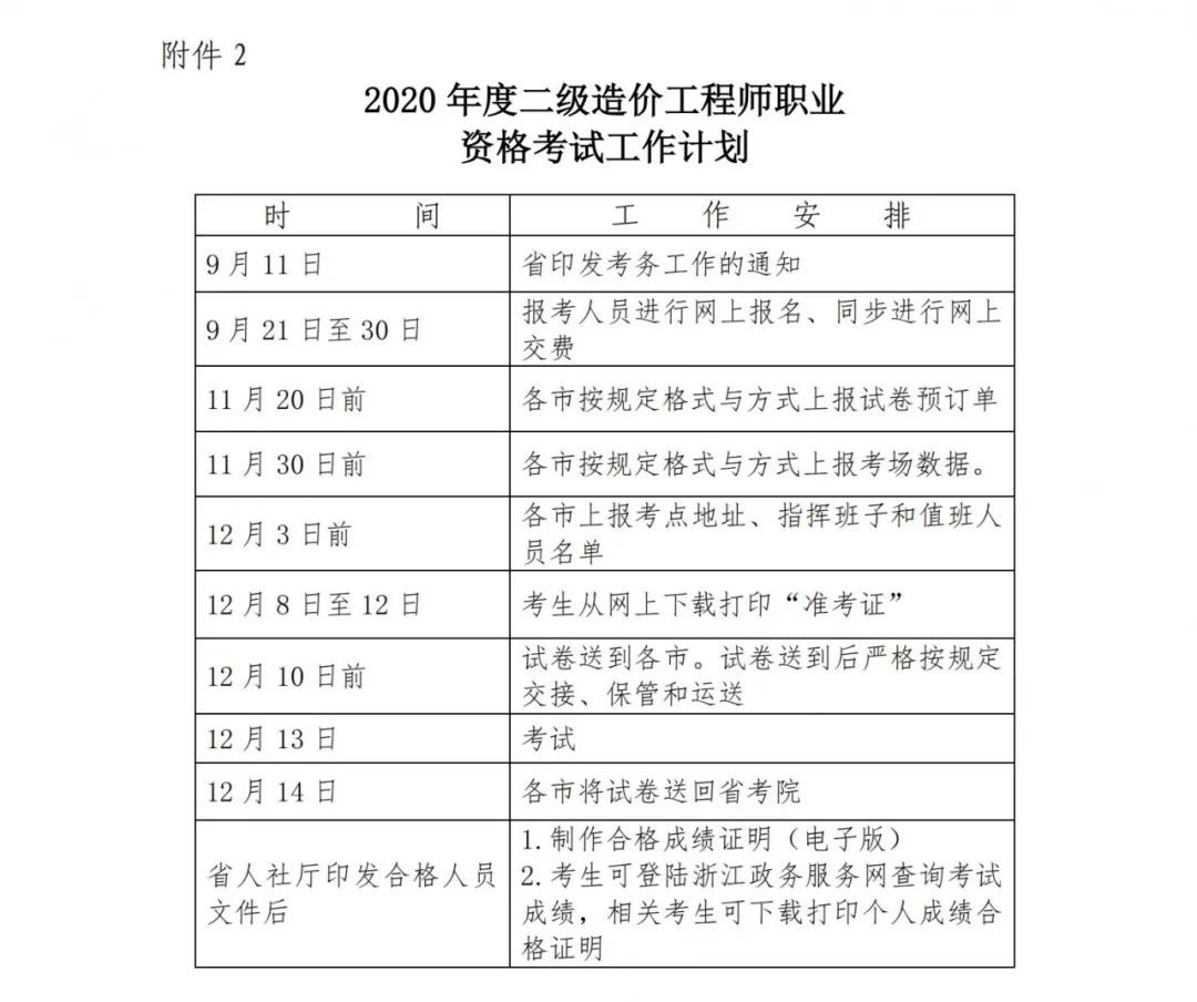 關(guān)于做好浙江省2020年度二級(jí)造價(jià)工程師職業(yè)資格考試考務(wù)工作的通知